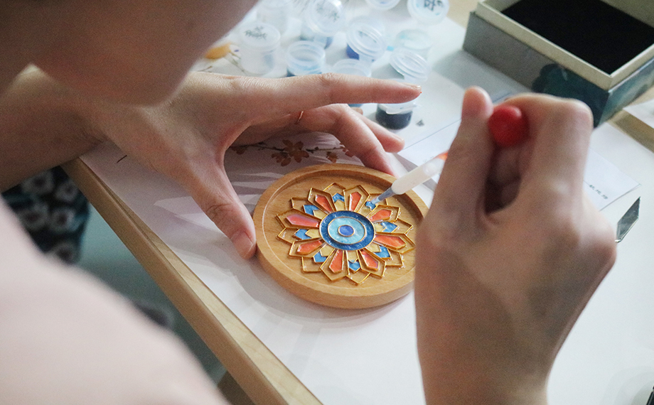 正是因為以湯斌為代表的良臣傾力為民,社會才能進步、時局才能穩固,這也為乾隆時期景泰藍的復興創造了條件。景泰藍,即掐絲琺瑯工藝,是中國的著名特種金屬工藝品類之一。在隨后的文化體驗課環節,大家興致勃勃地在老師的講解和幫助下參與到景泰藍手工技藝的體驗活動中,以金絲作胎,填充色釉,制作出屬于自己的景泰藍工藝蓮花杯墊、書簽、小鏡,用蓮心現廉韻,感受傳統文化魅力。