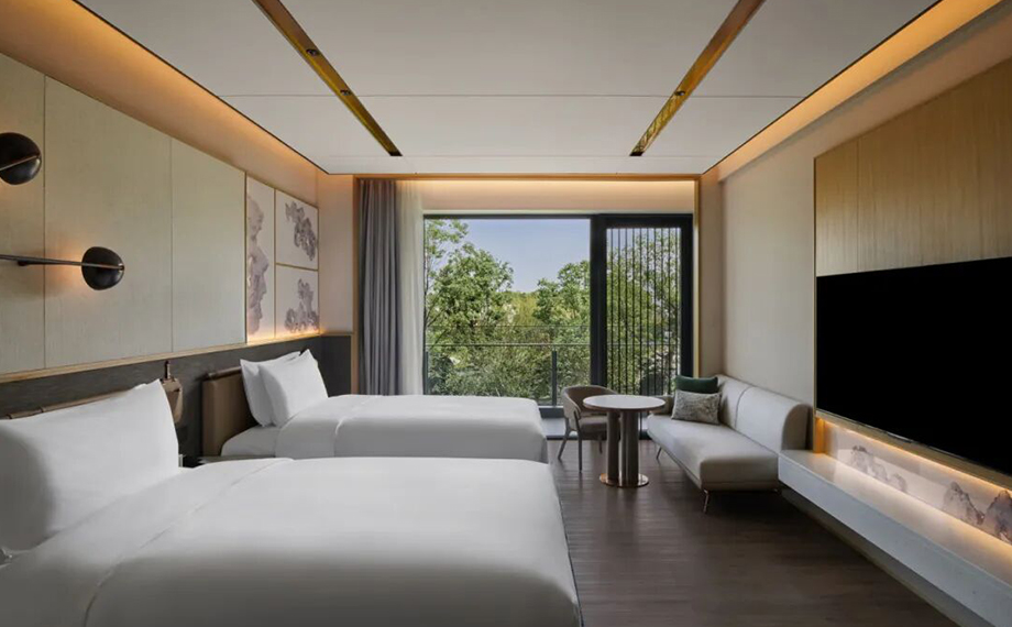 酒店擁有277間雅致客房、套房及6套獨立別墅。客房以清新淡雅的原木色調(diào),呈現(xiàn)簡約雅致的現(xiàn)代美學(xué)風(fēng)格,其間點綴的太湖石裝飾畫、中式屏風(fēng)等將蘇州園林意境巧妙融入,凸顯東方逸趣。客房自帶陽臺,配備65寸高清電視支持無線投屏功能,并配有輕智能馬桶、無線充電藍牙音響等智能化設(shè)備及高速無線網(wǎng)絡(luò)。房內(nèi)布置提取了太湖石、大閘蟹等蘇式元素進行設(shè)計,并臻選舒適床品與精致洗浴用品,讓旅途中的休憩倍添愜意。