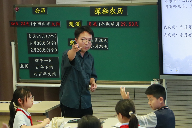 青劍湖小學(xué)陳柯老師執(zhí)教的《探秘農(nóng)歷》將數(shù)學(xué)與科學(xué)相融合,引導(dǎo)學(xué)生遷移公歷學(xué)習(xí)的經(jīng)驗(yàn),以數(shù)學(xué)視角探索農(nóng)歷的形成,讓學(xué)生在感受中華傳統(tǒng)文化獨(dú)特魅力的同時,深化了對數(shù)學(xué)知識的理解與運(yùn)用。