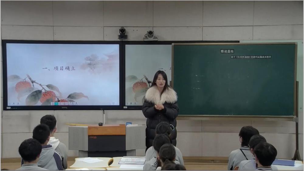 婁葑學校梁淑玉老師的《數說荔枝》一課,以電影《長安的荔枝》為引,組織學生圍繞唐代荔枝運輸問題展開跨學科探究。學生基于歷史情境規劃三條運輸路線,綜合運用速度公式、百分比及遞歸模型等數學工具,逐步推演運輸時長、鹽冰配比與成本結構。課堂融合地理、歷史、經濟知識于數學計算之中,不僅鍛煉了學生的數據建模與問題解決能力,更引導他們體悟“一騎紅塵”背后古人的智慧與艱辛,理解真實決策需平衡效率、成本與風險。課程進一步延伸至現代車厘子運輸方案設計,實現了從歷史到現實、從知識到應用的貫通,生動詮釋了數學源于生活,應用于生活。