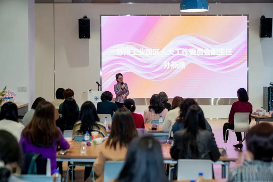 活動(dòng)伊始,蘇州工業(yè)園區(qū)人大工委(政協(xié)工作聯(lián)絡(luò)委)副主任孫燕燕發(fā)表致辭,并向在場(chǎng)的女企業(yè)家致以節(jié)日問候。她表示,女性企業(yè)家是推動(dòng)社會(huì)創(chuàng)新的重要力量,希望以此次活動(dòng)為契機(jī),搭建資源共享平臺(tái),激發(fā)女性創(chuàng)業(yè)創(chuàng)新活力,為區(qū)域高質(zhì)量發(fā)展注入更多“她動(dòng)能”,鼓勵(lì)大家要以“破界思維”擁抱時(shí)代機(jī)遇,在新時(shí)代展現(xiàn)巾幗擔(dān)當(dāng)。